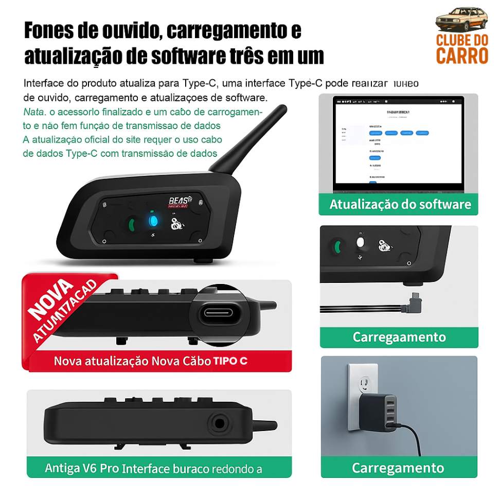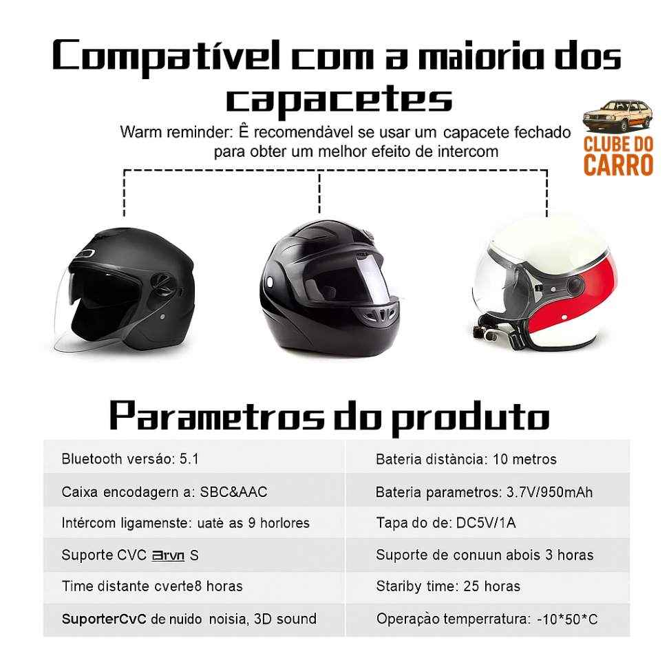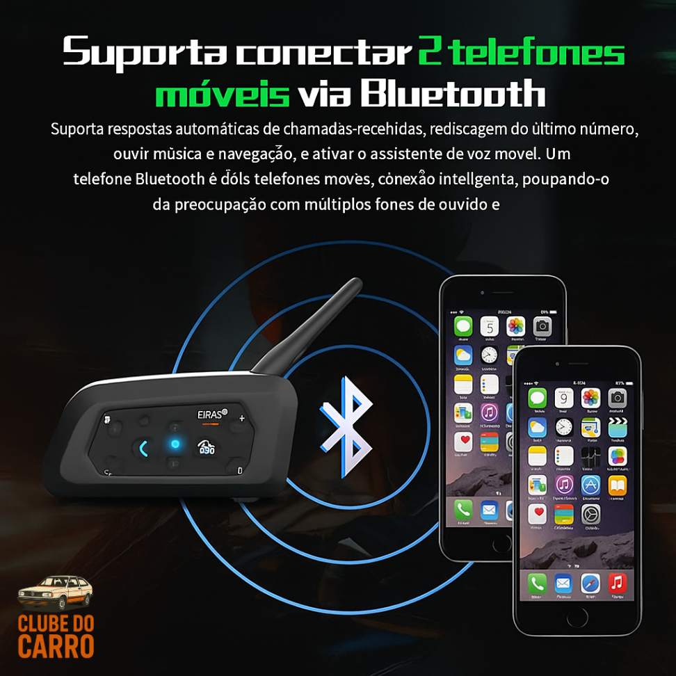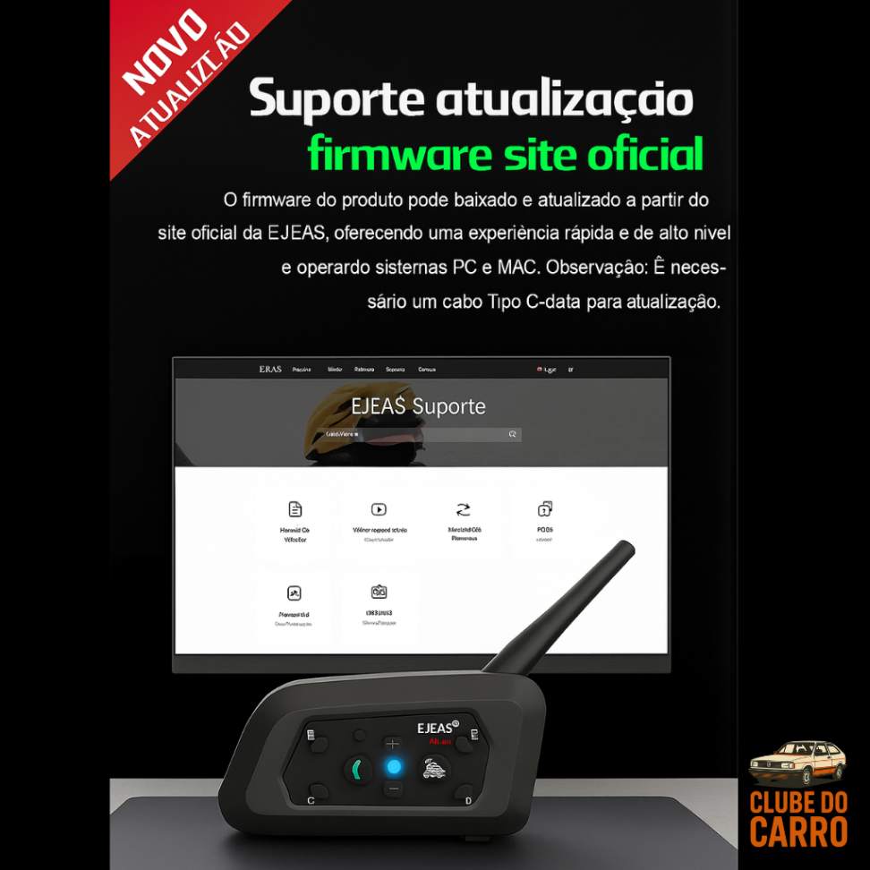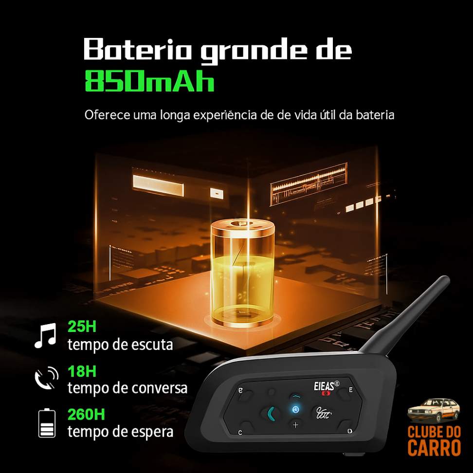 Bateria duradoura: até 18 horas de intercomunicação ou 30 horas de reprodução de música, com recarga completa em apenas 3 horas EJEAS.