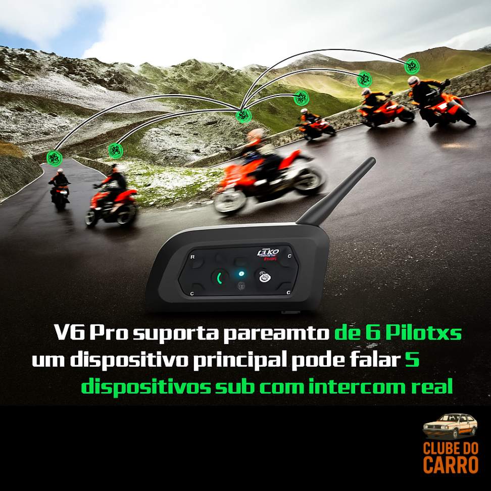 Transforme suas viagens de motocicleta com o EJEAS V6 Pro, um intercomunicador moderno e poderoso que conecta até 6 pilotos, com comunicação fluida entre 2 usuários simultaneamente. Ideal para aventuras solo ou em grupo.